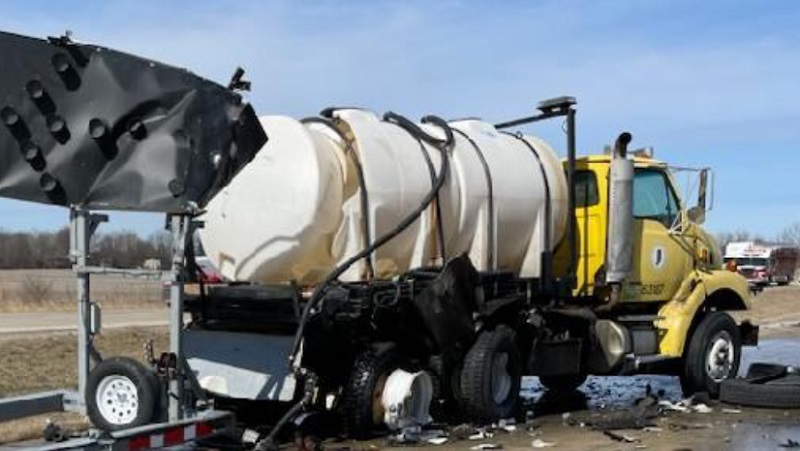 On U.S. 31 in Kokomo, a semi crashes into an INDOT truck