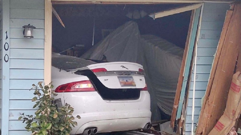 Automobile crashed into the house, injuring a mother and her child