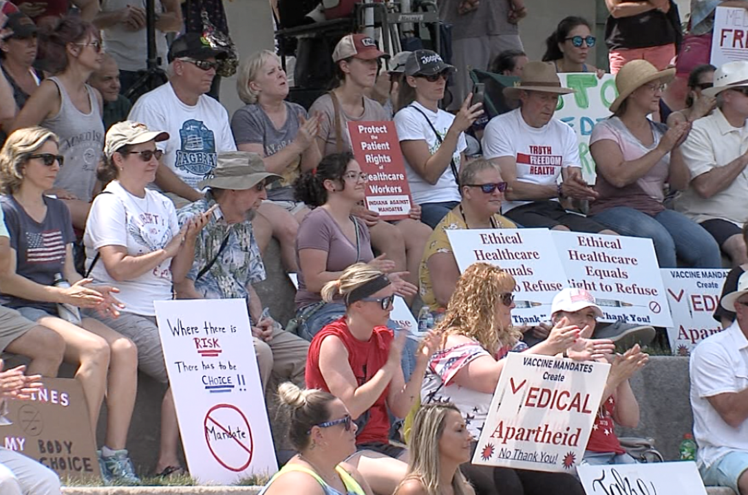 More than 200 people gathered to protest against IU Health COVID-19 vaccination mandate, report