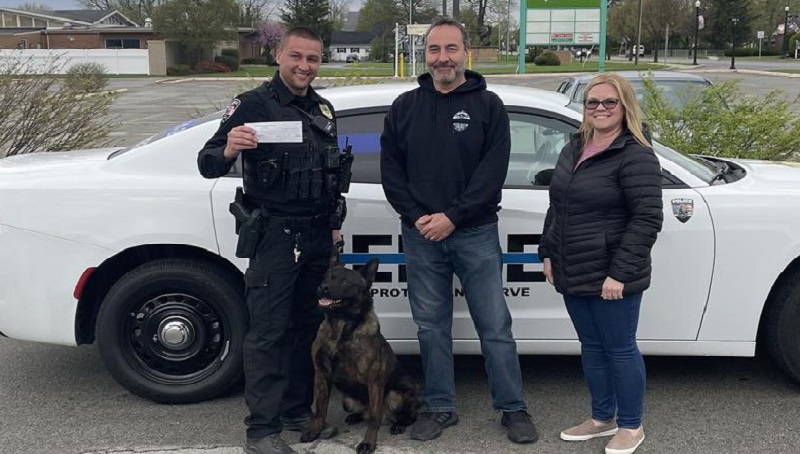 The parents of a fallen Elwood Police Officer present the first check to their son’s foundation, which supports the K9 program